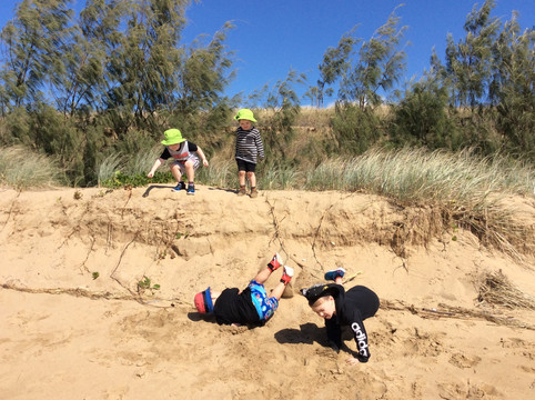 Our Schoolies and Kindy children love to climb trees and jump off sand banks whilst out and about in the community with their Educators! Look how high they climb, and how much fun they’re having!
